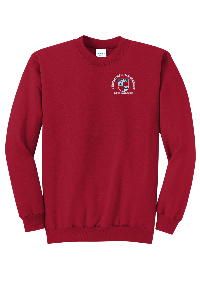 Veritas Arched Embroidered Port & Company - Core Fleece Crewneck Sweatshirt. PC78