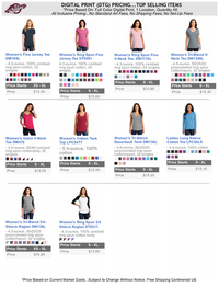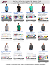 DIGITAL PRINT (DTG) PRICING...TOP SELLING ITEMS
