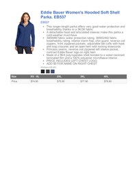 - Princess seams, reverse coil zippered left sleeve pocket, contrast Eddie Bauer logo on right hem